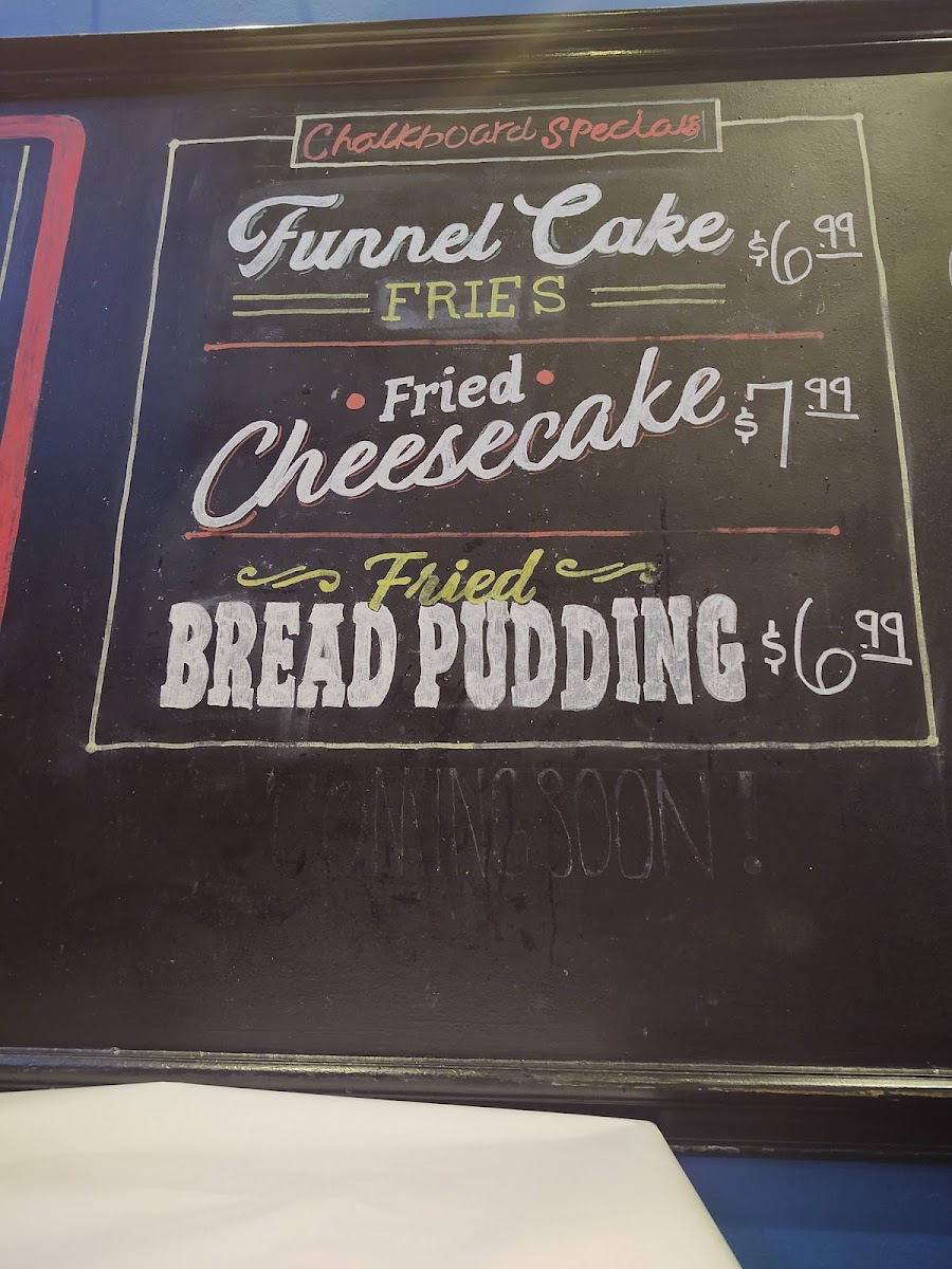 2 filets battered in cornmeal, fried & served with French fries & your choice of 2 sauces